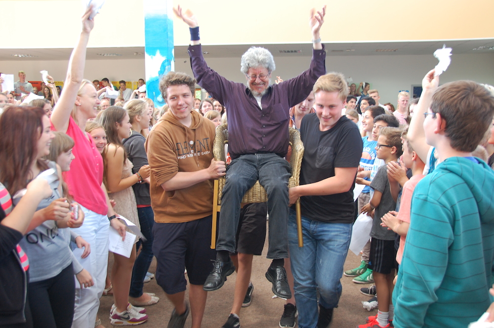 Die 25 Schülerinnen und Schüler der Klasse 12c führten am Ende des letzten Schuljahres „Hänsel“ auf, als ihr Höhepunkt in der Oberstufe und nach fast einjährigen Vorbereitungen und Proben. Entstanden im Unterricht des Faches Darstellendes Spiel unter der Leitung von Julia Buttgereit und unterstützt von Birgit Steinborn im Fach Kunst, die vor allem die benötigten großformatigen Bilder auf der Bühne erarbeiten ließ, haben die Schülerinnen und Schüler fast alles selbst erarbeitet: Die Sprechtexte des Stückes selbst geschrieben, die Kulissen gebaut/gezeichnet, die Bühnentechnik vorbereitet und bedient und auch die Musik vertont. Da die Zeit dazu im normalen Unterricht nicht reichte, hatten sich die Aktiven zudem freiwillig Dienstags nachmittags zu einer zusätzlichen Theater-AG zusammengeschlossen, um alles fertig zu bekommen. Und so konnten dann eine Vormittags- und zwei Abendveranstaltungen kurz vor den Sommerferien mit großem Erfolg durchgeführt werden.