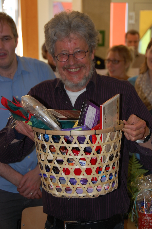 Ganz aus den Augen verloren haben wir Herrn Sieh aber nicht: Er war bereits mehrere Male wieder in der Schule, um seine Nachfolger, besonders Frau Lange und Herrn Baum, in die Geheimnisse der schuleigenen PC-Programme einzuweisen, gelockt natürlich mit … Schokolade.