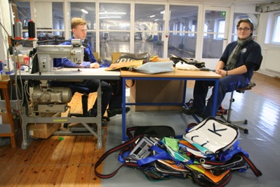 Beim anschließenden Rundgang beeindruckten einerseits die langgezogenen, historischen Fabrikgebäude und andererseits der moderne, computergesteuerte Flachbett-Plotter, mit dem große Planenteile ebenso geschnitten werden wie kleine Stoffteile zum Einbau in Flugzeugsitzen. Besonders nach dem Geschmack der Besucher waren allerdings die Umhängetaschen aus fehlproduzierten LKW-Planen, die von zwei Auszubildenden im Rahmen eines Sozialprojektes genäht wurden.