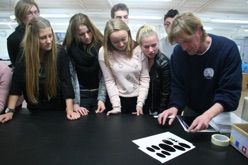 Als sich die Besucher schließlich selbst als „Technische Konfektionäre“ erproben durften, indem sie vorbereitete Folienbilder auf Kunststoffplatten übertrugen, stand das Urteil fest: Diese Betriebserkundung war interessant und hat Spaß gemacht. Das Lob von Frau Oellerking für die rege Beteiligung und das Durchhaltevermögen unserer Schülerinnen und Schüler hat uns natürlich auch gefreut. Vielen Dank!