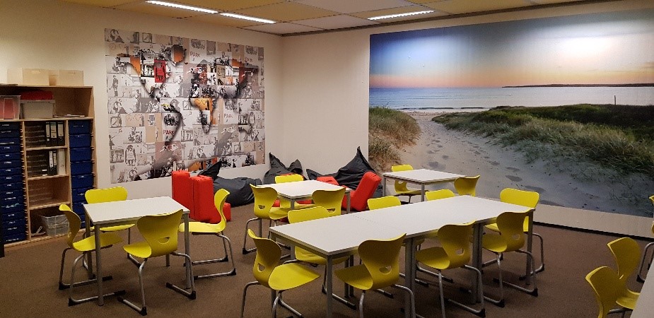 Es gibt einen Ruhebereich und Tische und Stühle, die zu den verschiedensten Aktivitäten und zum „nur da sein“ einladen. Die S*S können sich dazu verschiedenste Spiele entleihen, Aktivitäts-, Bastel- und Malmaterial steht zur Verfügung und natürlich besteht die Möglichkeit zu lernen, Aufgaben zu machen etc., auch ein offenes Ohr ist immer da und Platz und Raum, um einfach nur da zu sein.
