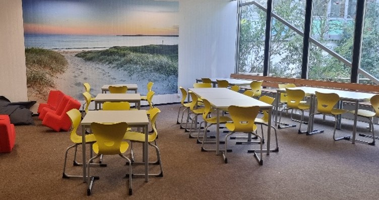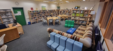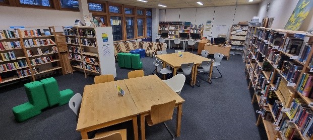 Hier können Bücher entliehen werden, es ist aber auch ein ruhiger Raum zum Arbeiten, Lernen, Lesen und „leise Pause machen“.